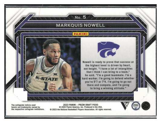 This is a nice example of a 2023 Panini Prizm Draft Picks #5b Markquis Nowell Other important information about this card:In 2023 Markquis Nowell played for the Kansas State Wildcats.Please...