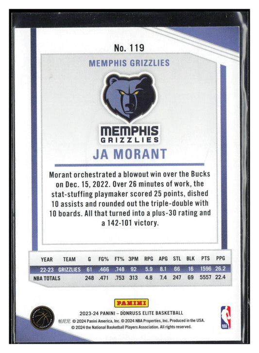 This is a nice example of a 2023-24 Donruss Elite #119 Ja Morant Orange Other important information about this card:In 2023 Ja Morant played for the Memphis Grizzlies.Please check out...