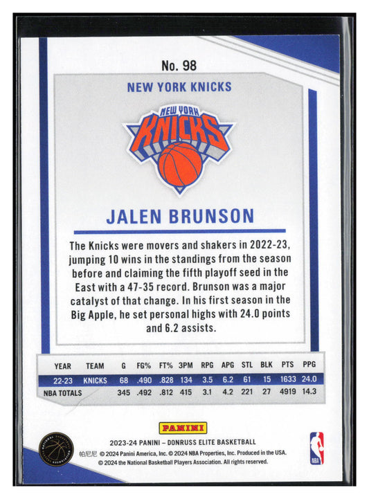 This is a nice example of a 2023-24 Donruss Elite #98 Jalen Brunson Orange Other important information about this card:In 2023 Jalen Brunson played for the New York Knicks.Please check...