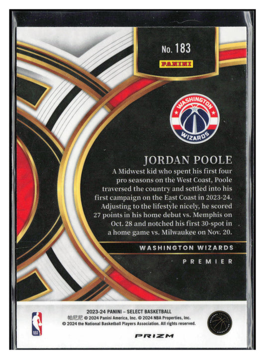 This is a nice example of a 2023-24 Panini Select #183 Jordan Poole Scope Prizms Other important information about this card:In 2023 Jordan Poole played for the Washington Wizards.Please check...