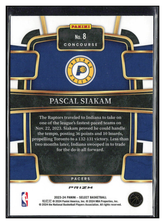 This is a nice example of a 2023-24 Panini Select #8 Pascal Siakam Silver Prizms Other important information about this card:In 2023 Pascal Siakam played for the Indiana Pacers.Please check...