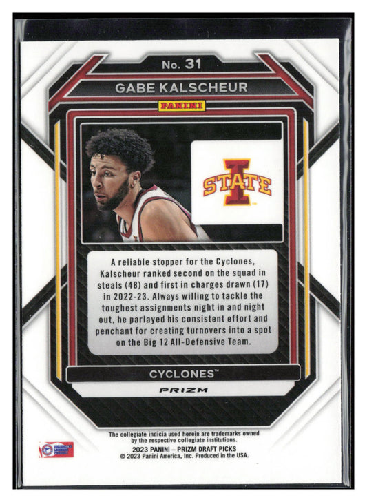 This is a nice example of a 2023 Panini Prizm Draft Picks #31 Gabe Kalscheur Red Ice Other important information about this card:In 2023 Gabe Kalscheur played for the Iowa...