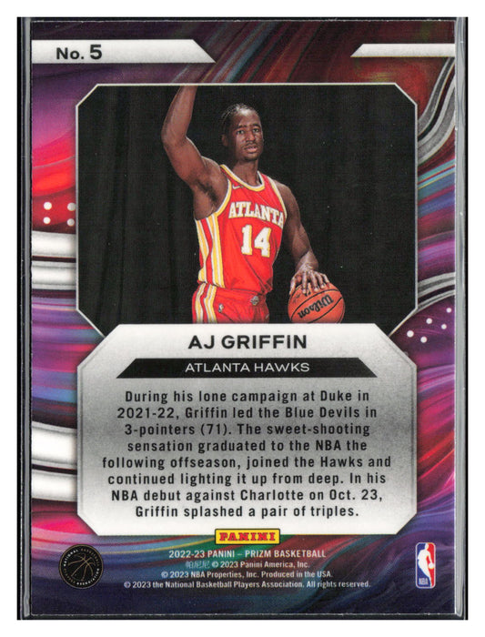 This is a nice example of a 2022-23 Panini Prizm #5 AJ Griffin Instant Impact Other important information about this card:In 2022 AJ Griffin played for the Atlanta Hawks.Please check...