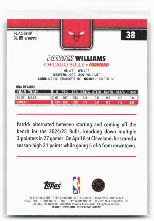 This is a nice example of a 2025-26 Topps #38 Patrick Williams Season Tip Off Other important information about this card:26256In 2025 Patrick Williams played for the Chicago Bulls.Please check...