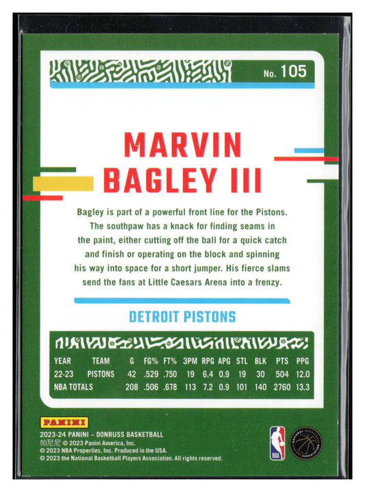 This is a nice example of a 2023-24 Donruss #105 Marvin Bagley III Laser Holo Other important information about this card:SNIn 2023 Marvin Bagley III played for the Detroit Pistons.Please...