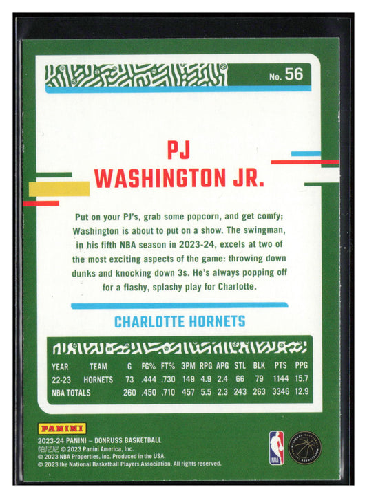 This is a nice example of a 2023-24 Donruss #56 PJ Washington Jr. Purple Press Proof Other important information about this card:SNIn 2023 PJ Washington Jr. played for the Charlotte...
