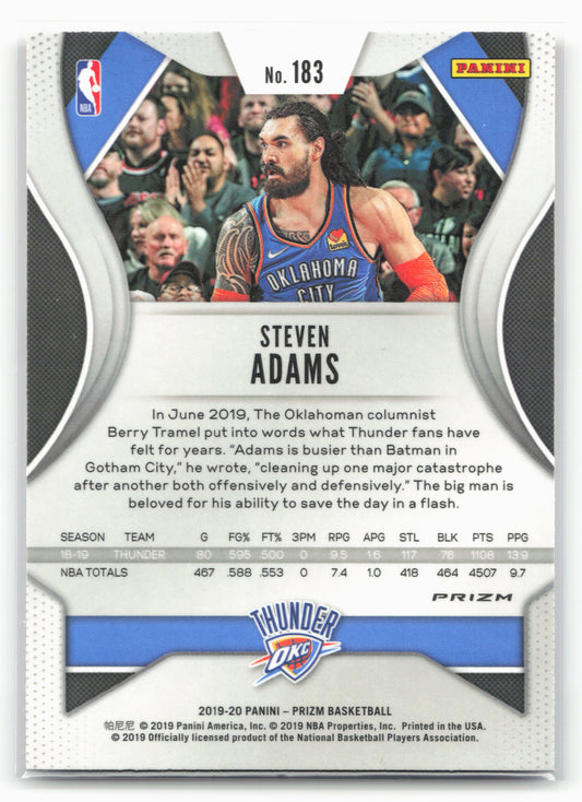 This is a nice example of a 2019-20 Panini Prizm #183 Steven Adams Prizms Red White and Blue Other important information about this card:In 2019 Steven Adams played for the...
