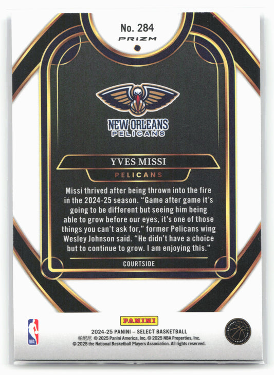This is a nice example of a 2024-25 Panini Select #284 Yves Missi Blue Prizm Other important information about this card:RCIn 2024 Yves Missi played for the New Orleans Pelicans.Please...