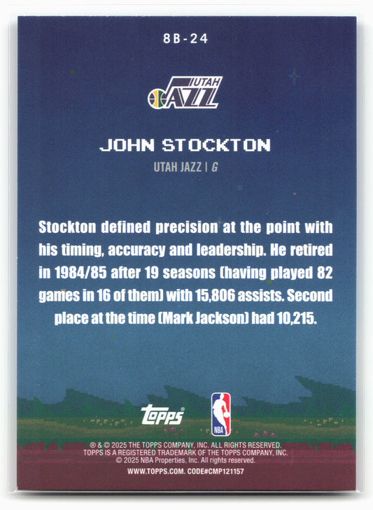 This is a nice example of a 2025-26 Topps #8B-24 John Stockton 8-Bit Ballers Other important information about this card:25758In 2025 John Stockton played for the Utah Jazz.Please check out...