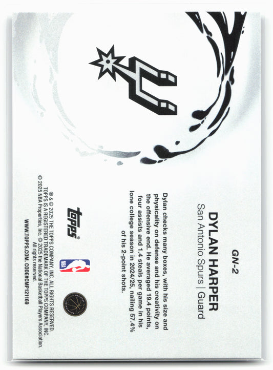 This is a nice example of a 2025-26 Topps #GN-2 Dylan Harper Generation Now Other important information about this card:25759In 2025 Dylan Harper played for the San Antonio Spurs.Please check...