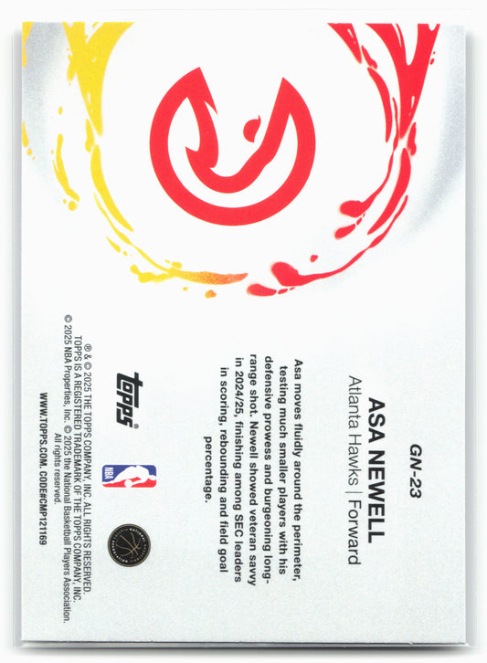 This is a nice example of a 2025-26 Topps #GN-23 Asa Newell Generation Now Other important information about this card:25760In 2025 Asa Newell played for the Atlanta Hawks.Please check out...