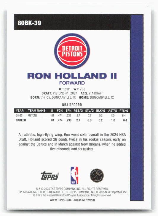 This is a nice example of a 2025-26 Topps #80BK-39 Ron Holland II 1980-81 Topps Basketball Other important information about this card:25762In 2025 Ron Holland II played for the Detroit...
