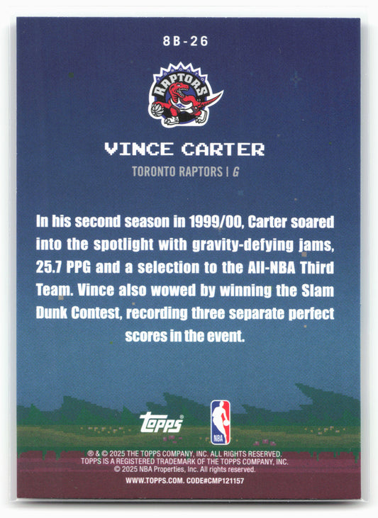 This is a nice example of a 2025-26 Topps #8B-26 Vince Carter 8-Bit Ballers Other important information about this card:25766In 2025 Vince Carter played for the Toronto Raptors.Please check out...