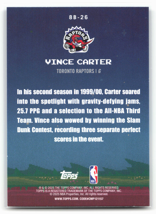 This is a nice example of a 2025-26 Topps #8B-26 Vince Carter 8-Bit Ballers Other important information about this card:25764In 2025 Vince Carter played for the Toronto Raptors.Please check out...