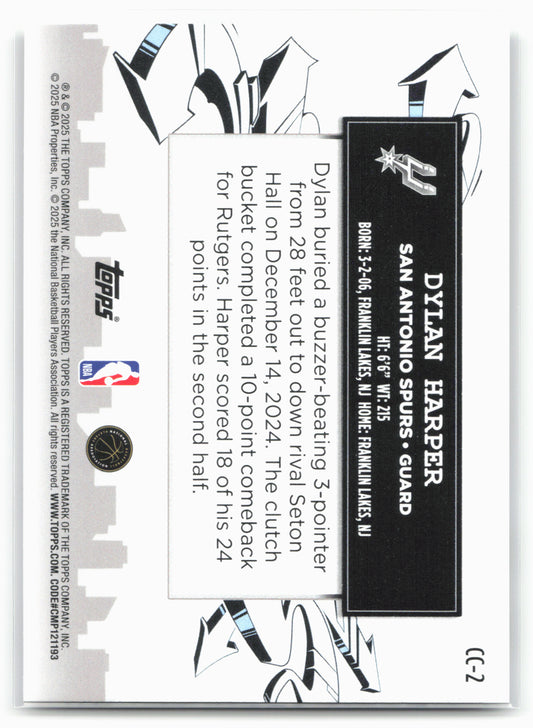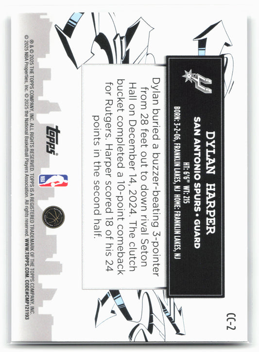This is a nice example of a 2025-26 Topps #CC-2 Dylan Harper Clutch City Prospects Other important information about this card:25767In 2025 Dylan Harper played for the San Antonio Spurs.Please...