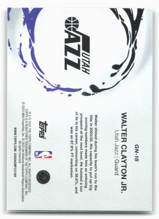 This is a nice example of a 2025-26 Topps #GN-18 Walter Clayton Jr. Generation Now Red Holo Foil Other important information about this card:25770SNIn 2025 Walter Clayton Jr. played for...