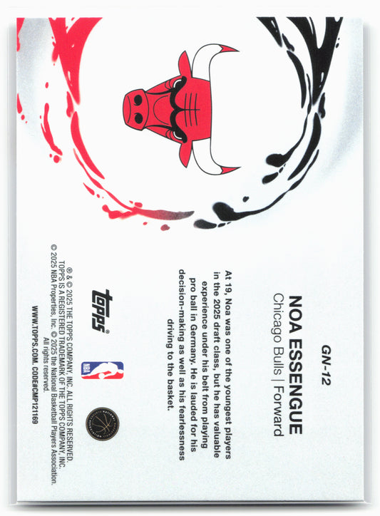 This is a nice example of a 2025-26 Topps #GN-12 Noa Essengue Generation Now Other important information about this card:25773In 2025 Noa Essengue played for the Chicago Bulls.Please check out...