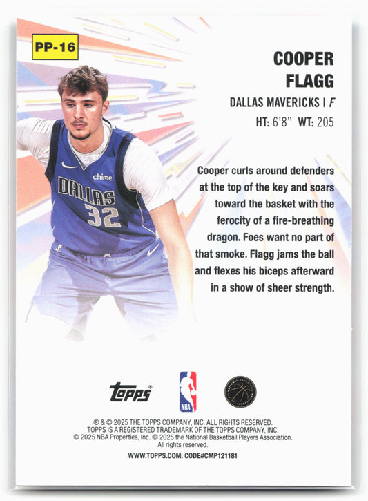 This is a nice example of a 2025-26 Topps #PP-16 Cooper Flagg Power Players Other important information about this card:25774In 2025 Cooper Flagg played for the Dallas Mavericks.Please check out...