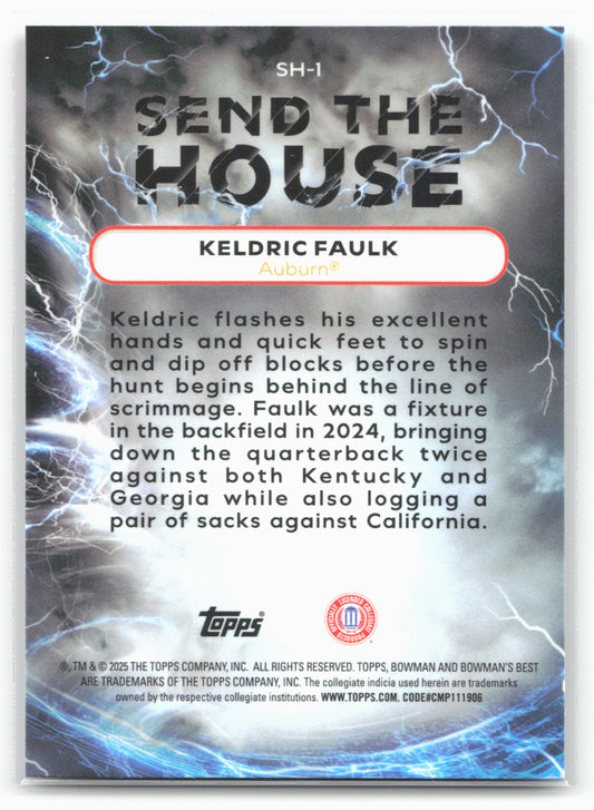 This is a nice example of a 2025 Bowman University Best #SH-1 Keldric Faulk Send The House Other important information about this card:In 2025 Keldric Faulk played for the Auburn...