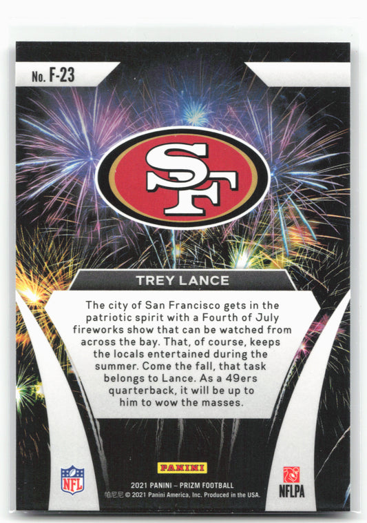 This is a nice example of a 2021 Panini Prizm #F-23 Trey Lance Fireworks Other important information about this card:In 2021 Trey Lance played for the San Francisco 49ers.Please check...