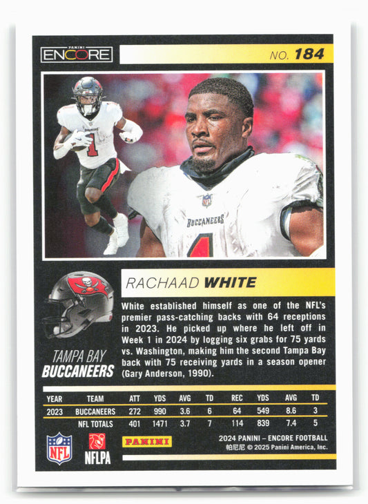 This is a nice example of a 2024 Panini Encore #184 Rachaad White Other important information about this card:In 2024 Rachaad White played for the Tampa Bay Buccaneers.Please check out...