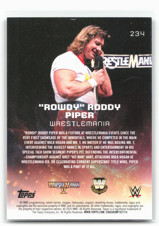 This is a nice example of a 2025 Topps Universe WWE #234 "Rowdy" Roddy Piper Other important information about this card:In 2025 "Rowdy" Roddy Piper played for the WWE.Please check...