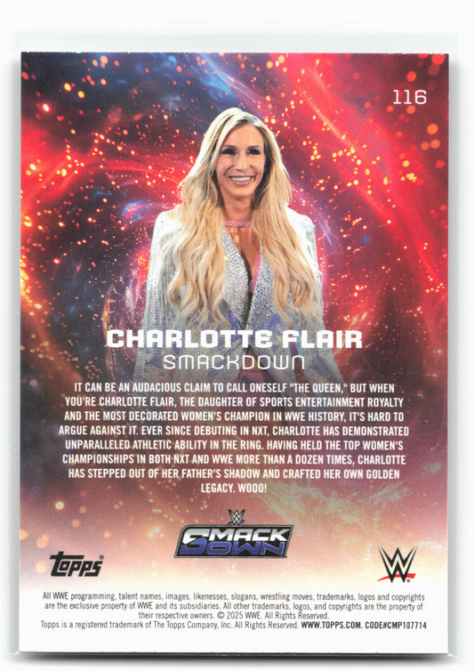 This is a nice example of a 2025 Topps Universe WWE #116 Charlotte Flair Other important information about this card:In 2025 Charlotte Flair played for the WWE.Please check out our...