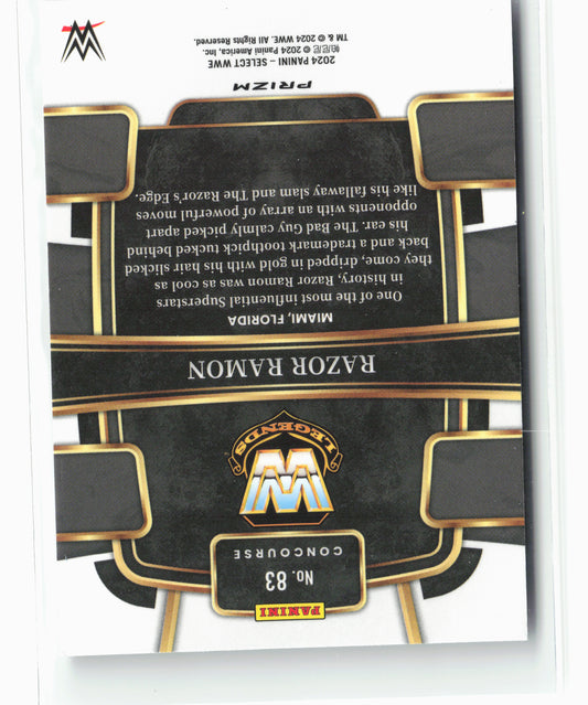 This is a nice example of a 2024 Panini Select WWE #83 Razor Ramon Silver Prizms Other important information about this card:In 2024 Razor Ramon played for the WWE.Please check...