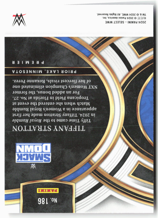 This is a nice example of a 2024 Panini Select WWE #186 Tiffany Stratton Red and Blue Other important information about this card:In 2024 Tiffany Stratton played for the WWE.Please...