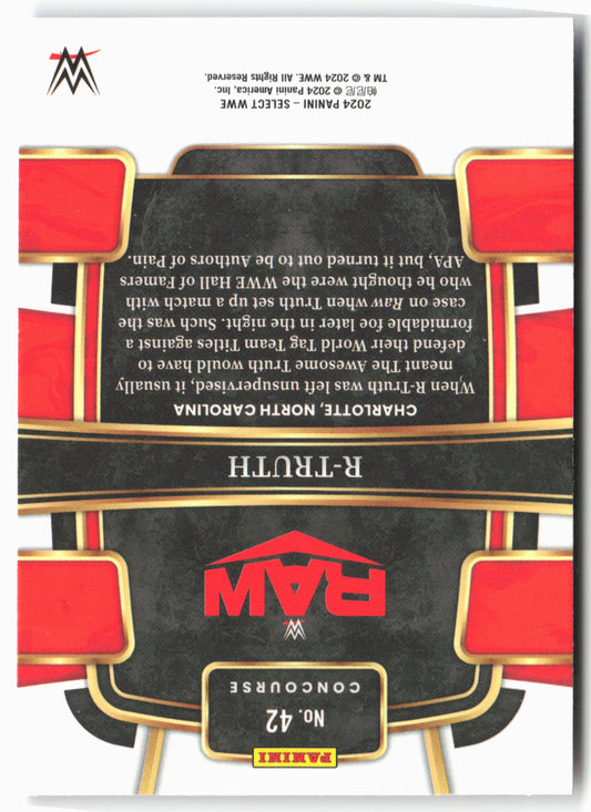 This is a nice example of a 2024 Panini Select WWE #42 R-Truth Other important information about this card:In 2024 R-Truth played for the WWE.Please check out our other listings...