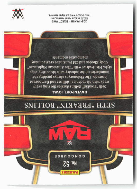 This is a nice example of a 2024 Panini Select WWE #52 Seth “Freakin” Rollins Other important information about this card:In 2024 Seth “Freakin” Rollins played for the WWE.Please check...
