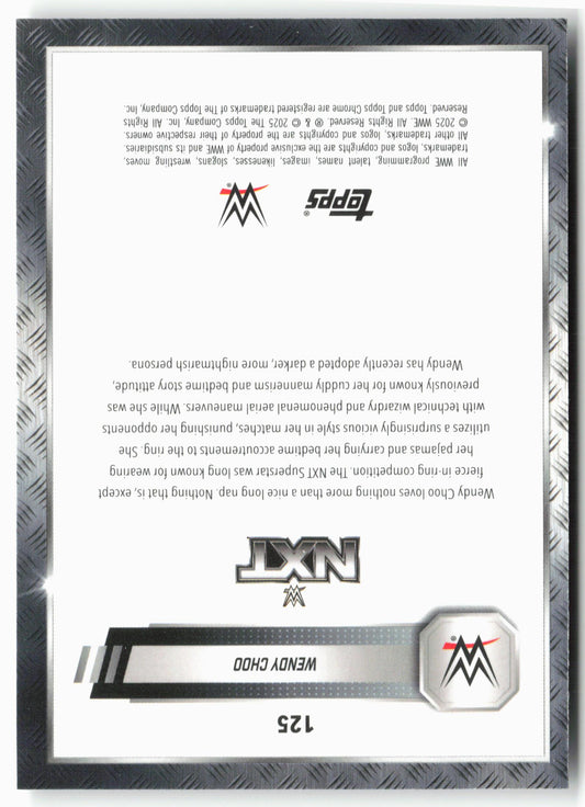 This is a nice example of a 2025 Topps Chrome WWE #125 Wendy Choo Sepia Refractor Other important information about this card:In 2025 Wendy Choo played for the WWE.Please check...