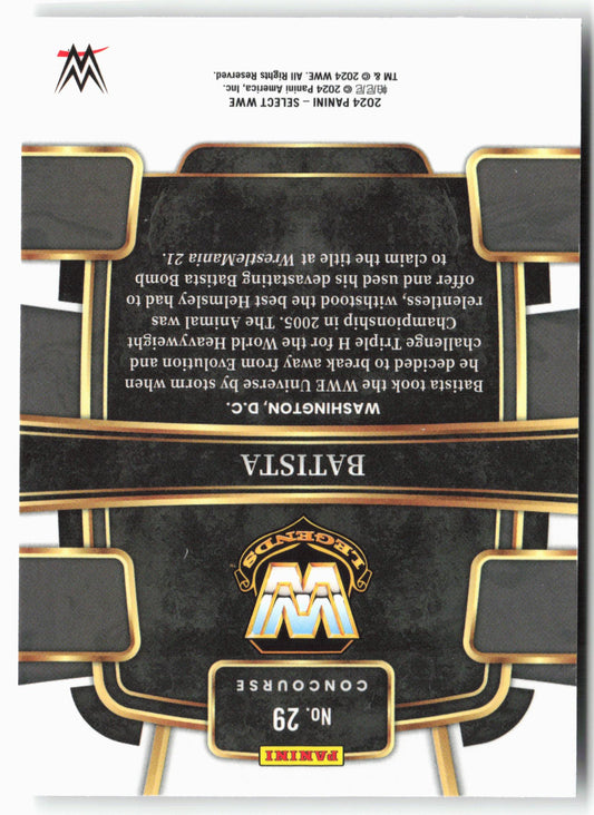 This is a nice example of a 2024 Panini Select WWE #29 Batista Other important information about this card:In 2024 Batista played for the WWE.Please check out our other listings...