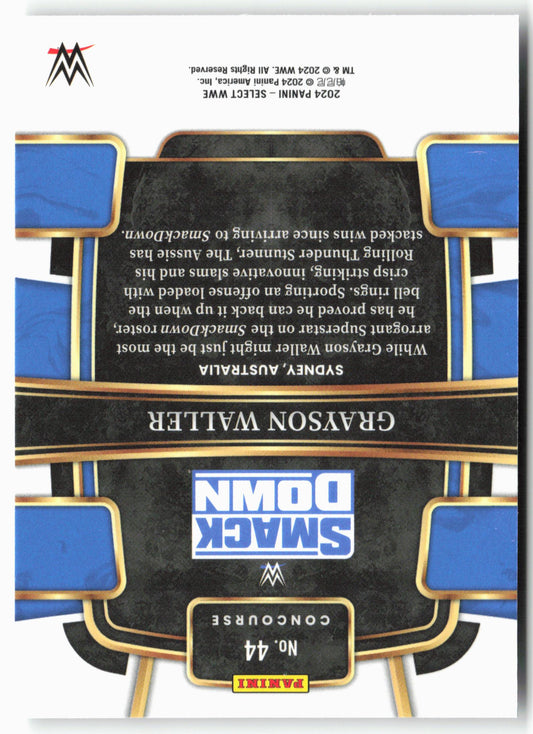 This is a nice example of a 2024 Panini Select WWE #44 Grayson Waller Other important information about this card:In 2024 Grayson Waller played for the WWE.Please check out our...
