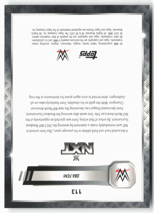 This is a nice example of a 2025 Topps Chrome WWE #113 Oba Femi Steel Cage Refractor Other important information about this card:SNIn 2025 Oba Femi played for the WWE.Please...