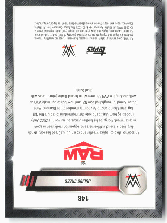 This is a nice example of a 2025 Topps Chrome WWE #148 Julius Creed Aqua Shimmer Refractor Other important information about this card:SNIn 2025 Julius Creed played for the WWE.Please...