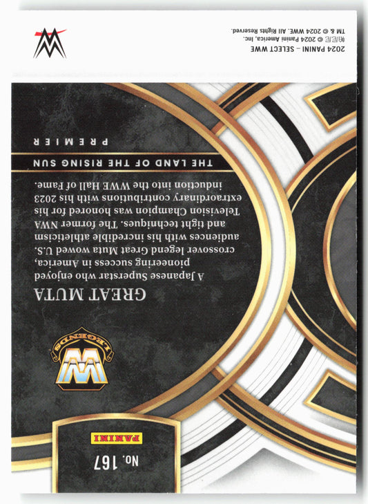 This is a nice example of a 2024 Panini Select WWE #167 Great Muta Other important information about this card:In 2024 Great Muta played for the WWE.Please check out our...