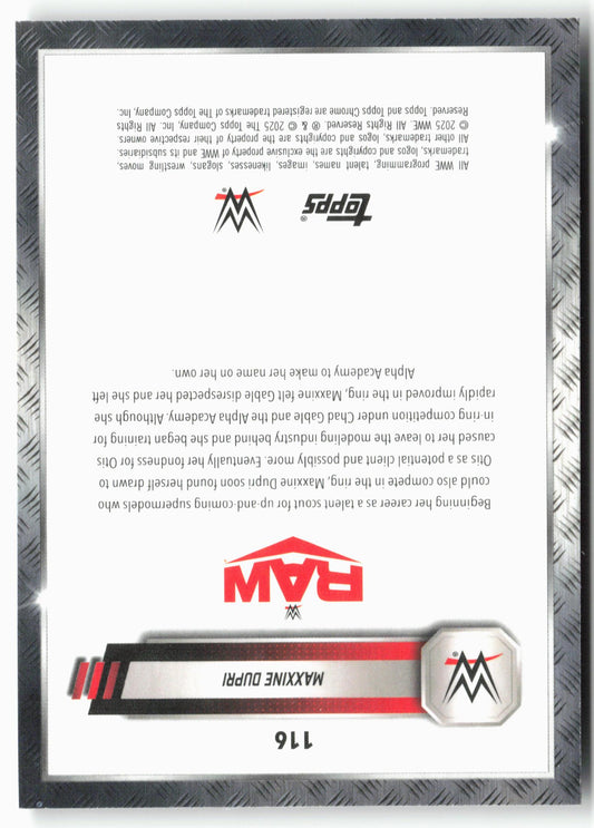 This is a nice example of a 2025 Topps Chrome WWE #116 Maxxine Dupri Neon Green and Black Refractor Other important information about this card:In 2025 Maxxine Dupri played for...