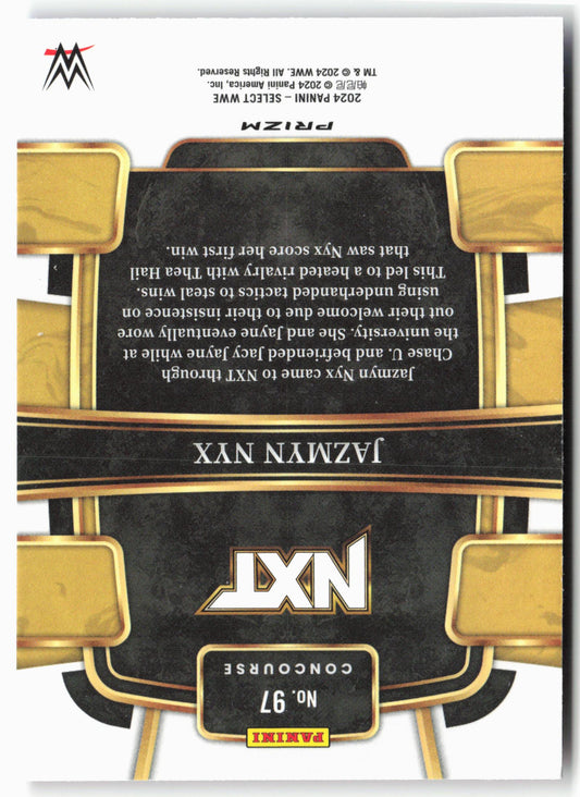 This is a nice example of a 2024 Panini Select WWE #97 Jazmyn Nyx Red and Blue Prizms Other important information about this card:RCIn 2024 Jazmyn Nyx played for the...