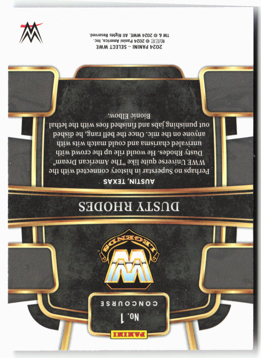 This is a nice example of a 2024 Panini Select WWE #1 Dusty Rhodes Red and Blue Other important information about this card:In 2024 Dusty Rhodes played for the LEGEND.Please...