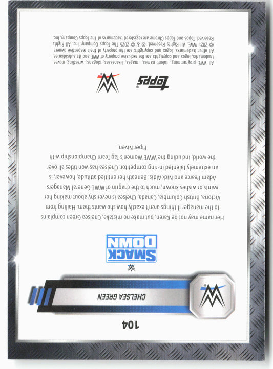 This is a nice example of a 2025 Topps Chrome WWE #104 Chelsea Green Other important information about this card:In 2025 Chelsea Green played for the SMACKDOWN.Please check out our...
