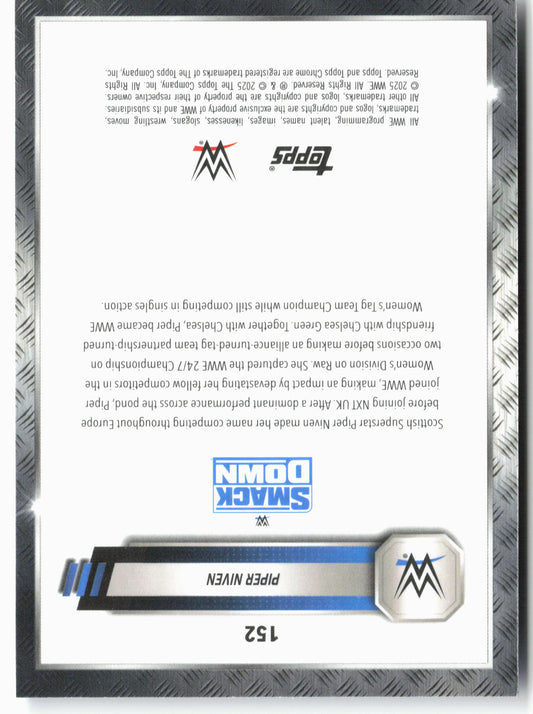 This is a nice example of a 2025 Topps Chrome WWE #152 Piper Niven Red and Blue Refractor Other important information about this card:In 2025 Piper Niven played for the...