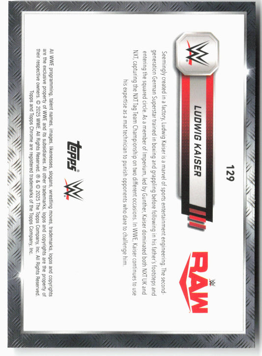 This is a nice example of a 2025 Topps Chrome WWE #129 Ludwig Kaiser Prism Refractor Other important information about this card:In 2025 Ludwig Kaiser played for the WWE.Please check...