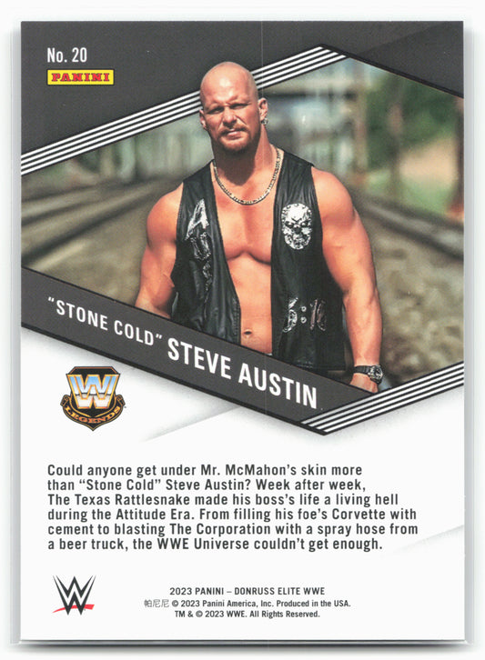 This is a nice example of a 2023 Donruss Elite WWE #20 "Stone Cold" Steve Austin Spellbound Green Other important information about this card:In 2023 "Stone Cold" Steve Austin played...