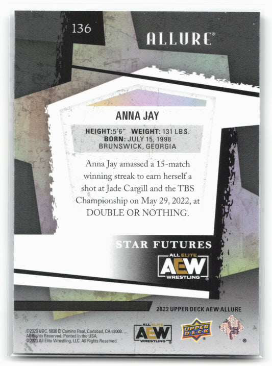 This is a nice example of a 2022 Upper Deck Allure AEW #136 Anna Jay Other important information about this card:In 2022 Anna Jay played for the AEW.Please check out...