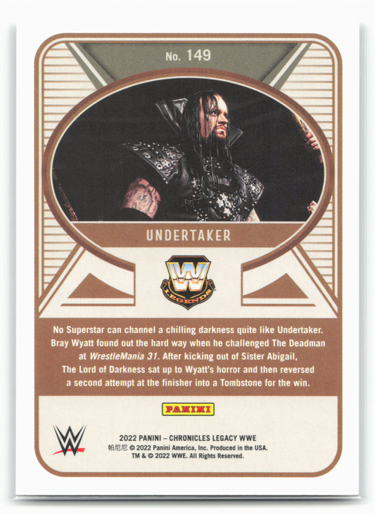 This is a nice example of a 2022 Panini Chronicles WWE #149 Undertaker Other important information about this card:In 2022 Undertaker played for the WWE.Please check out our other listings...