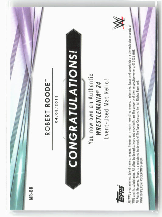 This is a nice example of a 2021 Topps WWE #MR-BR Robert Roode Mat Relics Other important information about this card:MEMIn 2021 Robert Roode played for the WWE.Please check out...