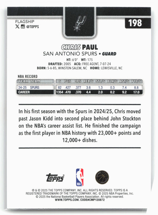 This is a nice example of a 2025-26 Topps #198 Chris Paul Other important information about this card:In 2025 Chris Paul played for the San Antonio Spurs.Please check out our...