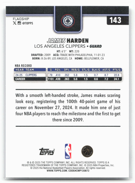 This is a nice example of a 2025-26 Topps #143 James Harden Other important information about this card:In 2025 James Harden played for the Los Angeles Clippers.Please check out our...