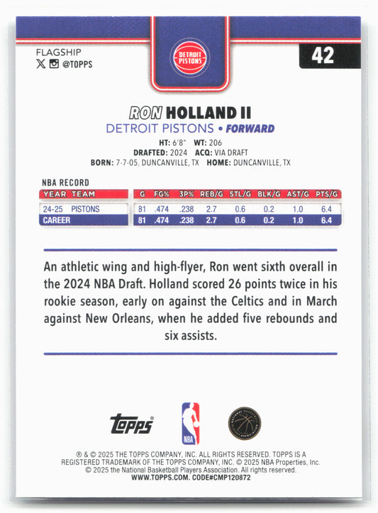This is a nice example of a 2025-26 Topps #42 Ron Holland II Other important information about this card:In 2025 Ron Holland II played for the Detroit Pistons.Please check out...